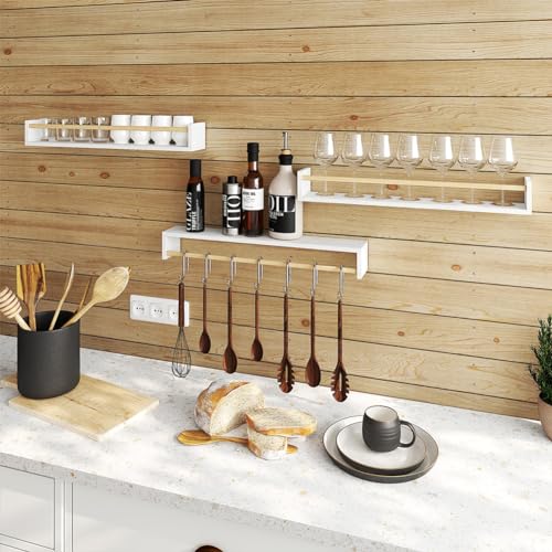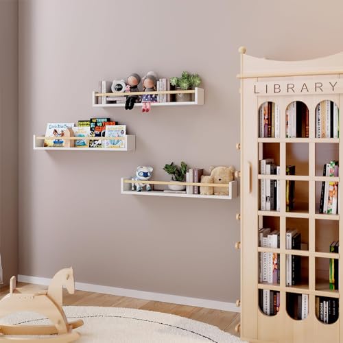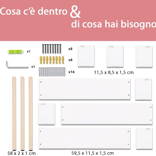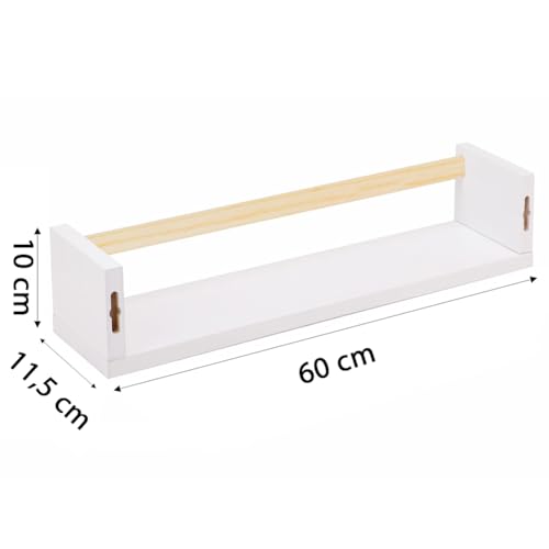 BAKAJI - رف حائط خشبي من باكاجي مجموعة 3 أرفف متعددة الأغراض وقضيب حماية لغرفة النوم وغرفة المعيشة والمطبخ وخزانة الكتب موفر للمساحة 11.5 سم عرض × 60 طول 10 ارتفاع ابيض وبلوط