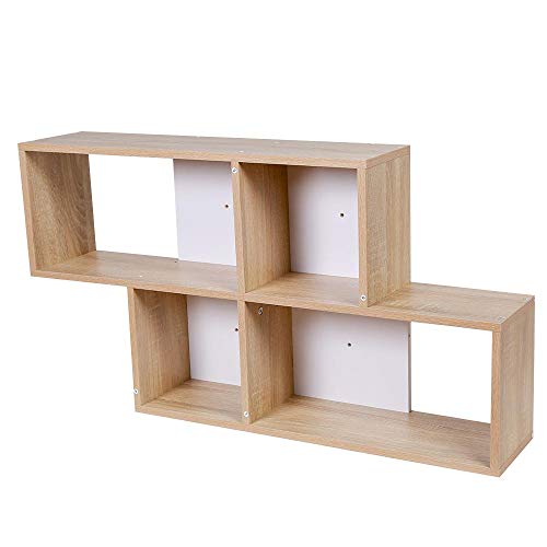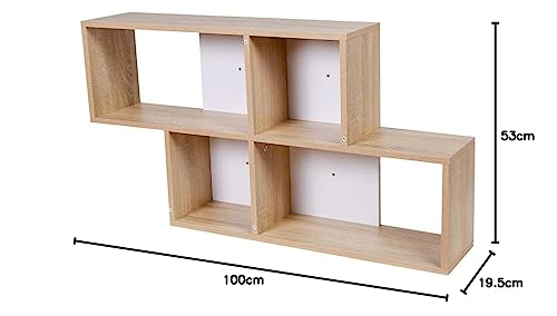 BAKAJI - خزانة كتب بتصميم عصري من باكاجي مع 4 ارفف وهيكل من خشب ام دي اف بلونين مقاس 100 × 53 × 19.5 سم لديكور المنزل والمكتب (بلوط ابيض)