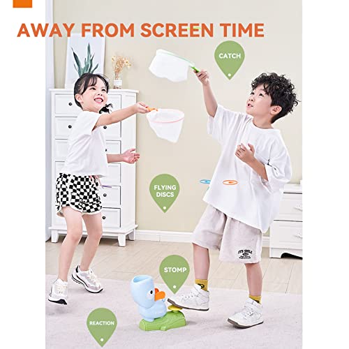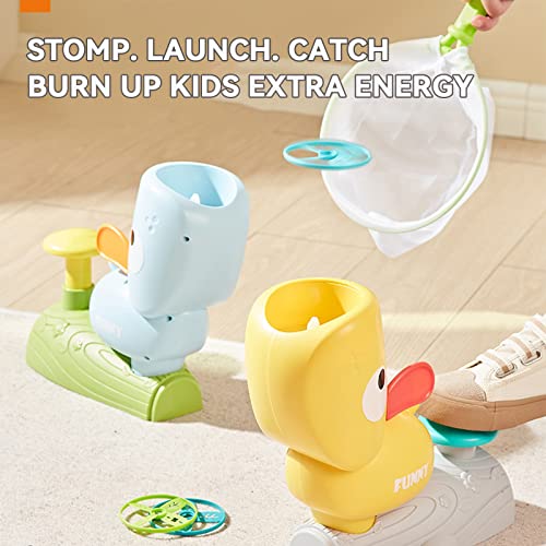 - 【استعد وأطلق وامسك】هذه الألعاب الخارجية والداخلية للأولاد هي مجموعة قاذف أقراص طائرة. يمكن للأطفال أن يرموها بسهولة ويشاهدون القرص يطير على ارتفاع 3-6 م. استعد لتحديد مكان الهبوط والتقاطه.