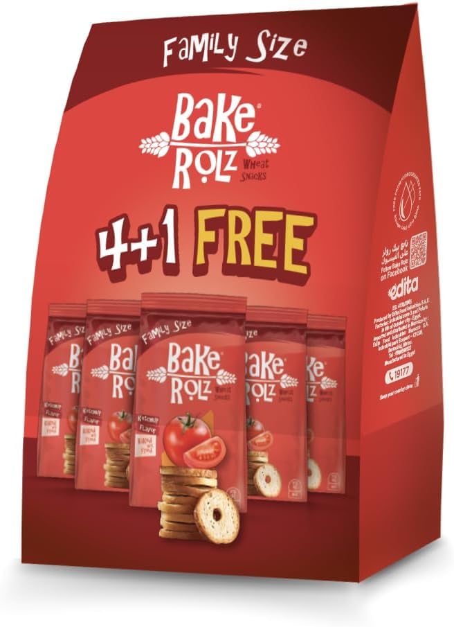 - عبوة مقرمشات من بيك رولز، حجم عائلي بطعم الكاتشب، قطع متعددة (4+1).