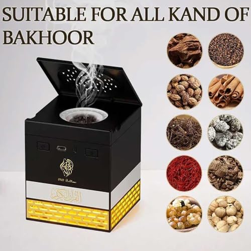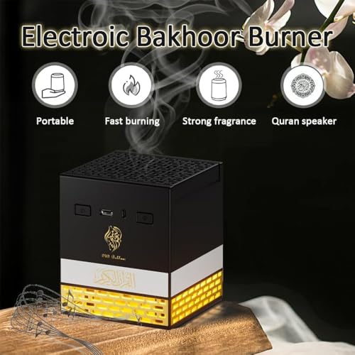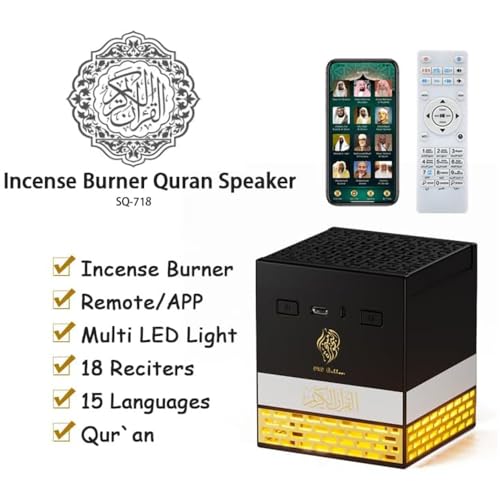Bakhoor BoSidin - مبخرة بخور مرفقة بمكبر صوت للقرآن الكريم، يتم التحكم بها عبر تطبيق وجهاز تحكم، مكبر صوت قرآني يعمل بالبلوتوث مع مصباح ليلي ليد، مبخرة إلكترونية تحتوي على تلاوة القرآن كاملاً والأذان من بوسايدن