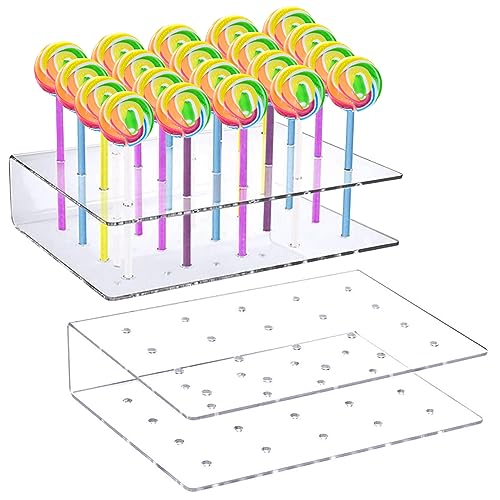 Bakiauli - حامل كيك بوب من 2 قطعة من باكيولي، حامل مصاصات مصنوع من اكريليك شفاف بـ 20 فتحة، حامل عرض كيك بوب لحفلات الزفاف وأعياد الميلاد