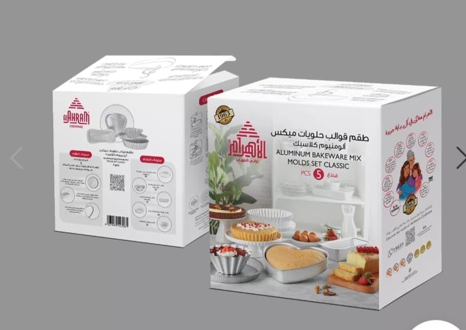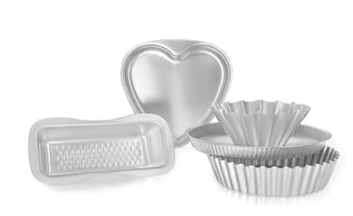 - مجموعة متكاملة: تتضمن 5 قوالب متنوعة من الألومنيوم للخبز والحلويات، تشمل قالب على شكل قلب وقوالب تارت بأحجام مختلفة