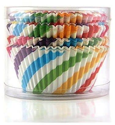 Spaceshoop - مجموعة أكواب خبز، مجموعة بطانات كب كيك ورقية للمافن للاستعمال مرة واحدة، عبوة من 100 قطعة (بتصميم قوس قزح)، 9988333