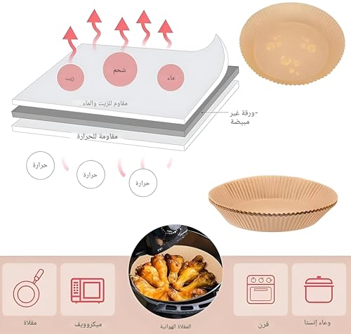 - 【سهلة التنظيف، لا تسبب الفوضى】: هل سئمت من تنظيف المقلاة الهوائية بعد طهي طعامك الكريمي والزيتي؟ بطانات ورق الزبدة هذه اختراع رائع لتنظيف سلس دون فوضى. فهي لن تسبب أي فوضى أو مزيد من التسرب. عند الانتهاء من الطهي، يمكنك فقط مسح المقلاة الهوائية بقطعة قماش مبللة، وستكون نظيفة.