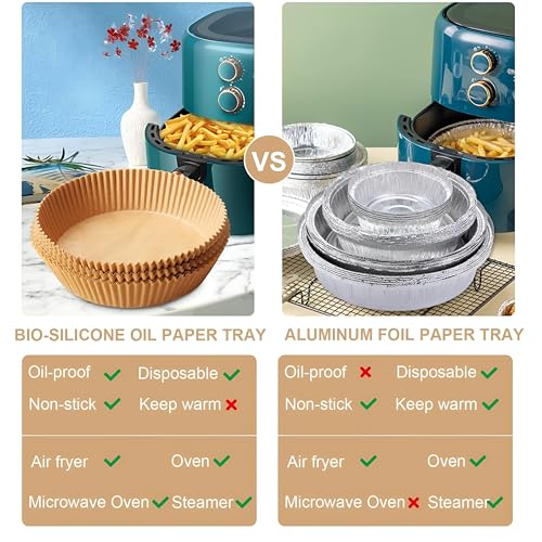 - 【مقاس مقصوص مسبقًا】: بطانة ورقية دائرية للاستعمال مرة واحدة مقاس 20 سم مثالية لمقالي الهواء المستديرة مقاس 16 سم وأواني الطهي بالبخار المعدنية. تم تصميم بطانات المقلاة الهوائية غير اللاصقة التي تستخدم لمرة واحدة بتصميم وعاء دائري، لا حاجة للتمزيق أو الطي أو القطع أو الثني ويمكن وضعها مباشرة عند الطهي. يمكن للحافة المرتفعة بحوالي 4.572 سم حماية جوانب المقلاة ومنع الطعام من الالتصاق بالوعاء.