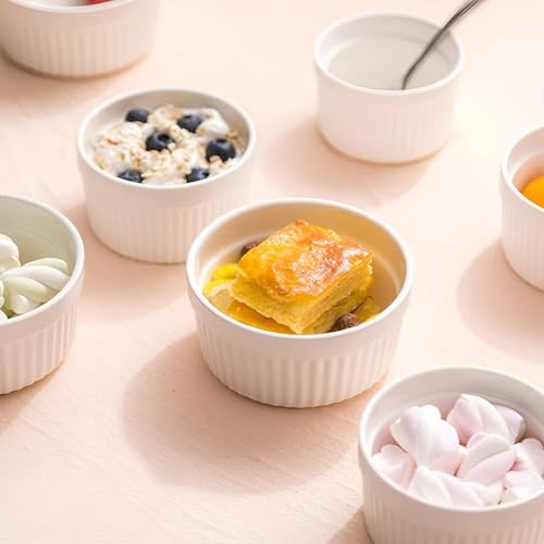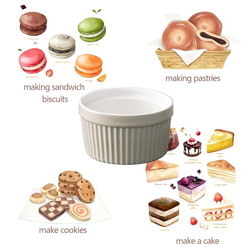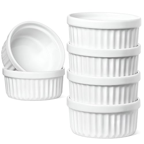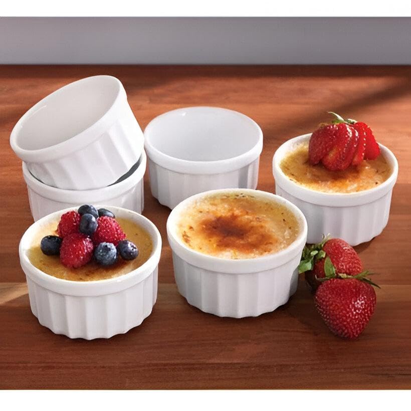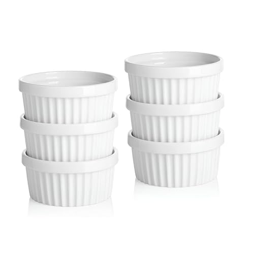 LC - قالب خبز - أكمل مجموعة مطبخك مع أوعية راميكينز بورسلين بيضاء أنيقة؛ مثالية للكعك والحلويات والسوفليه، متينة وسهلة التنظيف للاستخدام اليومي (6 قطع)