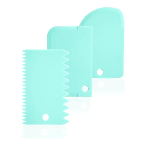 - استخدام مرن: يأتي مشط تزيين الكيك بتصميم سميك لتتكني من تقليب الكريمة وفردها بسهولة وسلاسة دون القلق بشأن الفجوات أو الحصول على شكل نهائي غير متساوي، أما أداة تقطيع العجين البلاستيك المرنة فتأتي بفتحة تعليق لتتمكني من تعليقها بسهولة عقب الاستخدام. وتتميز مقشطة الكيك بأنها سهلة التنظيف، فكل ما عليك فعلها هو غسلها بالماء الدافئ.