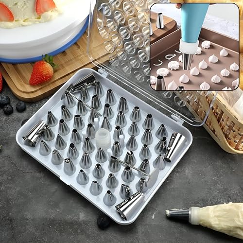 Generic - أدوات الخبز - اكتشف مجموعة فوهات التزيين المكونة من 55 قطعة المصنوعة من الفولاذ المقاوم للصدأ والمصممة لتزيين الكيك والمعجنات مقااس 17.5*21.5 سم