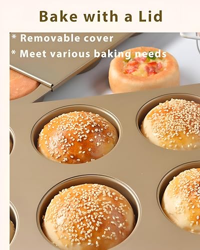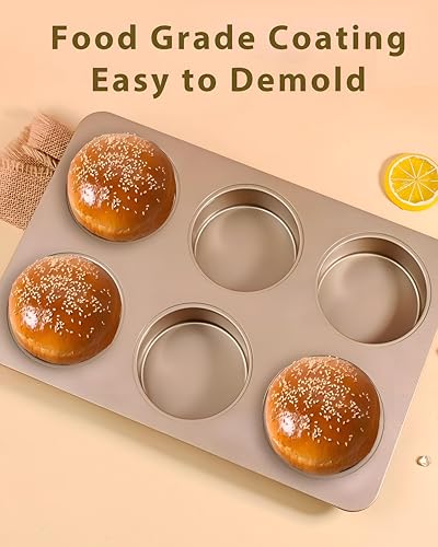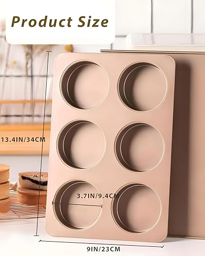 Generic - صينية خبز - صينية خبز احترافية مقاس كبير 3.7 انش بستة اكواب جانبية مستقيمة لصنع الكيك الانجليزي او الكب كيك او خبز الهامبرغر تتميز بطلاء ذهبي عالي الجودة غير لاصق
