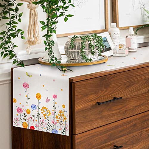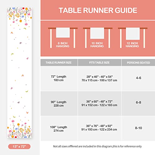 Bakovity - مفرش طاولة بتصميم زهور وفراشات، مفرش طاولة بنمط ريفي لموسم الربيع والصيف بنمط نباتات المزرعة لحفلات العطلات وديكور غرفة الطعام ودولاب الملابس مقاس 33 سم × 1.83 متر من باكوفيتي