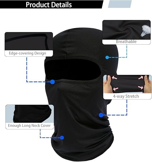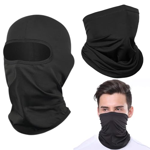 Lonimia - مجموعة قناع الوجه والرقبة من بالاكلافا - حماية من الاشعة فوق البنفسجية في الصيف، وشاح قابل لاعادة الاستخدام وجيد التهوية لركوب الدراجات والتزلج وصيد الاسماك والمشي لمسافات طويلة، اسود، مقاس واحد