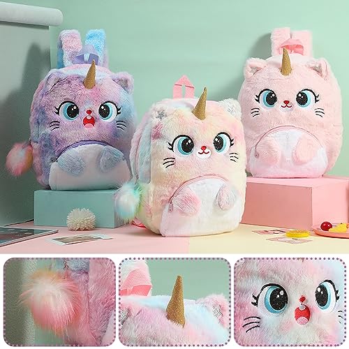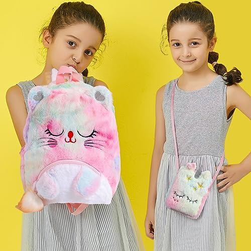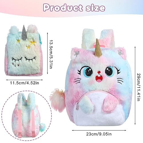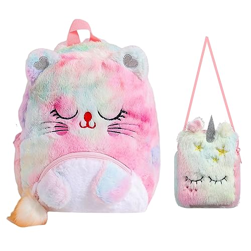 Balakaka - طقم شنطة ظهر بتصميم يونيكورن للأطفال في مرحلة رياض الأطفال من قطعتين، شنطة قطيفة بتصميم قطة لعيد ميلاد البنات والأولاد، مناسبة لرحلات طلاب المدرسة الابتدائية من 3 إلى 8 سنوات، أفكار هدايا من بالاكاكا