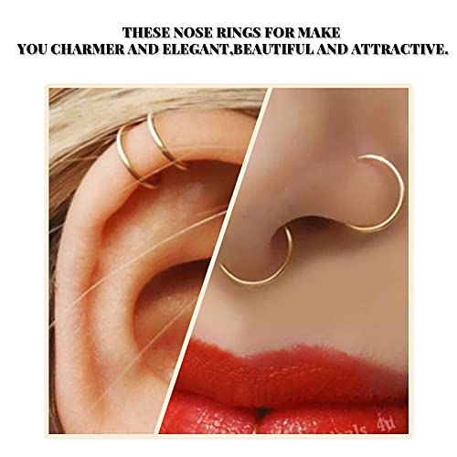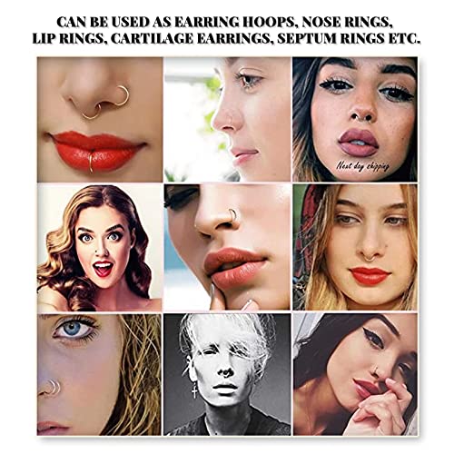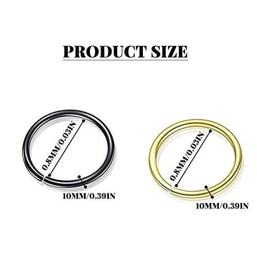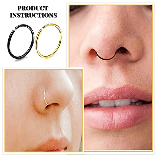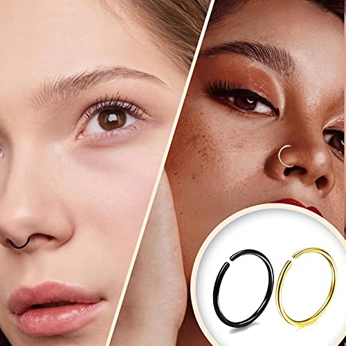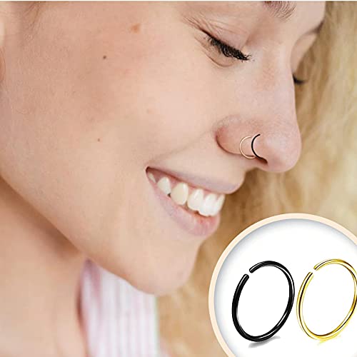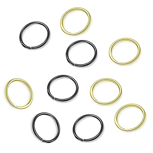 Balamii - 10 قطع من حلقات الأنف ، مجموعة حلقات الأنف باللونين الأسود والذهبي ، حلقات أنف من الفولاذ المقاوم للصدأ ، حلقات ثقب مجوهرات للجسم ، حلقة أنف صغيرة - ملائمة مريحة ، حلقة أنف لثقب واحد
