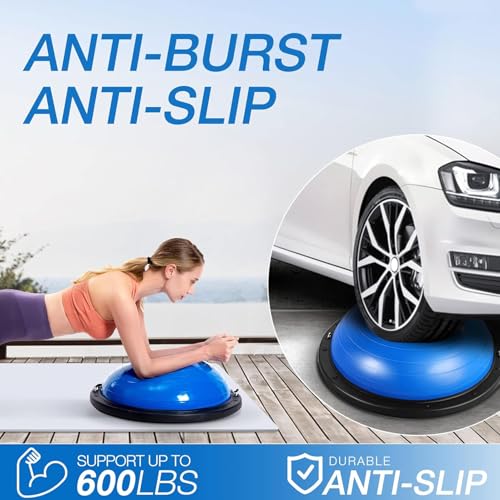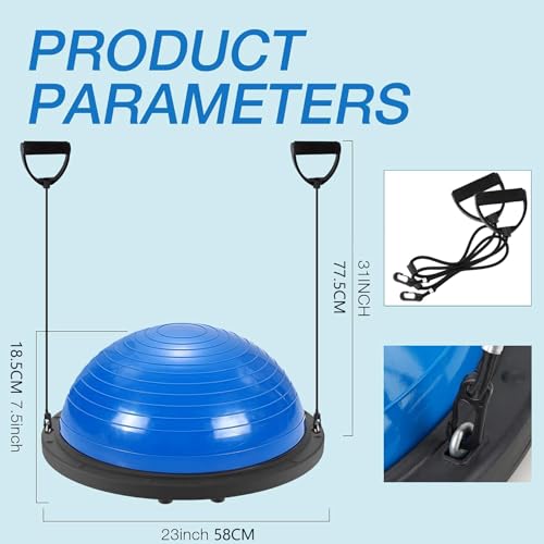TangFee - مدرب كرة التوازن، نصف كرة يوجا مع أحزمة مقاومة ومضخة قدم، معدات تدريب الثبات لتمارين القوة واللياقة البدنية وتمارين الصالة الرياضية المنزلية
