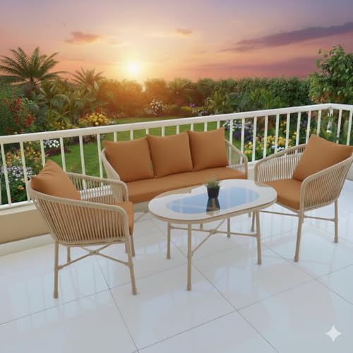 Generic - طقم أثاث حديقة وبلكونة، دهان إلكتروستاتيك مقاوم للرطوبة والصدأ، لون بيج، يشمل كنبة وكراسي وطاولة