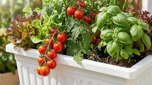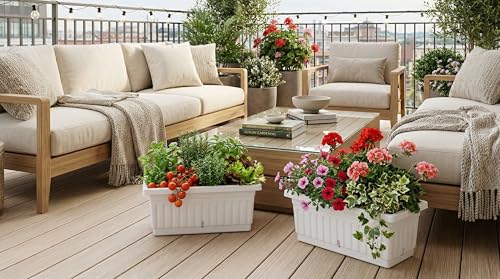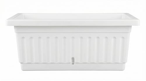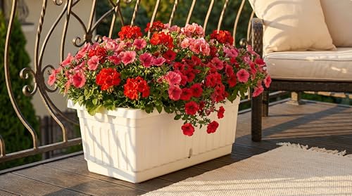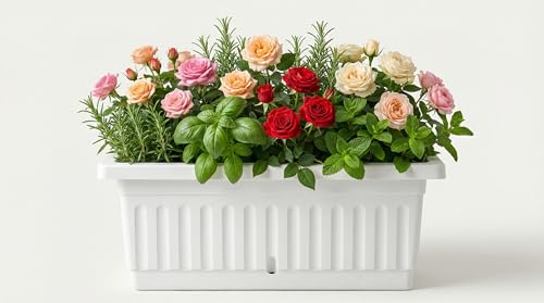Generic - حوض زراعة بلاستيكي للشرفة، مستطيل ملون مع طبق تجميع المياه، للنباتات المنزلية والزهور (أبيض, 40 سم*20سم*17 سم)