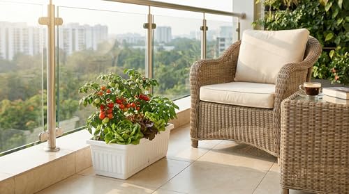 - تصميم عملي: حوض زراعة مستطيل مصنوع من البلاستيك المتين مع تصميم أنيق يناسب الشرفات والمساحات الخارجية