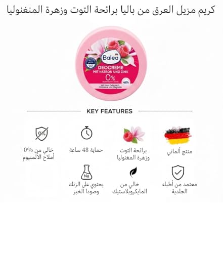 Volans - كريم مزيل العرق ديو كريم لرائحة منعشة 48 ساعة، لا يحتوي على أملاح ألومنيوم من باليا، عطر توت العليق والمغنوليا، 50 مل