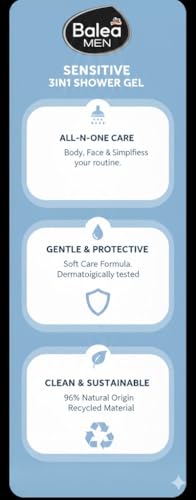 Balea - جل استحمام بالماولايف للرجال أصحاب البشرة الحساسة 3 في 1 من بيلا، زجاجة بسعة 300 مل