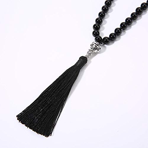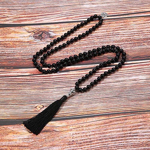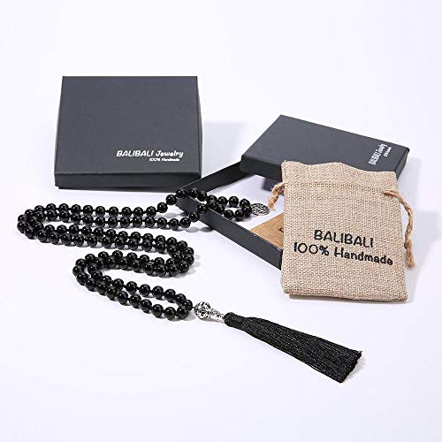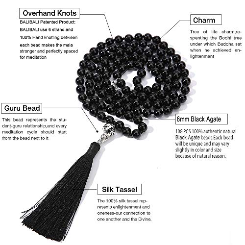 BALIBALI - سلسلة خرز مالا من 108 حجر شبه كريم معقودة يدويا بشراشيب مع دلاية بشكل شجرة الحياة بالي للنساء بنات للرجال