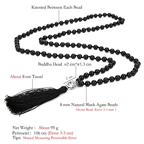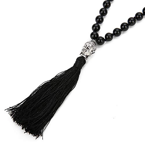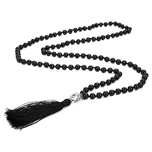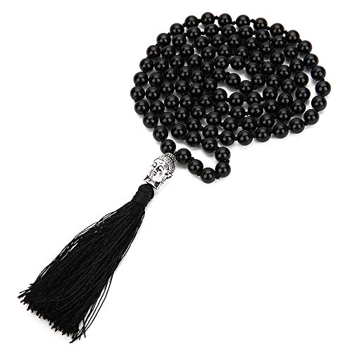 BALIBALI - بلبالي سبحة مالا من 108 خرزة مقاس 8 ملم لليوغا قلادة الحجر الطبيعي للتامل جابا بشراشيب للصلاة حجر للنساء