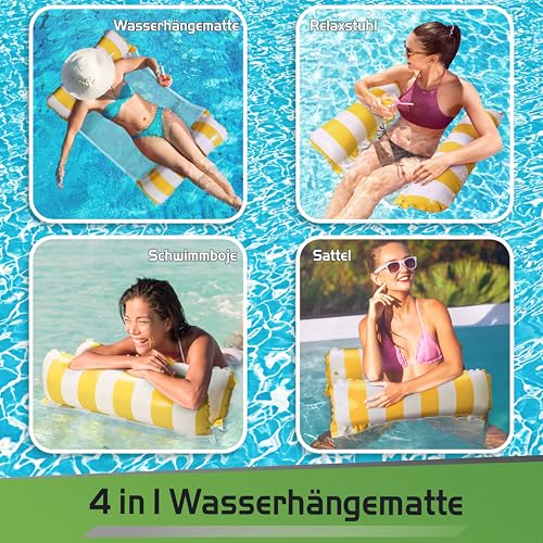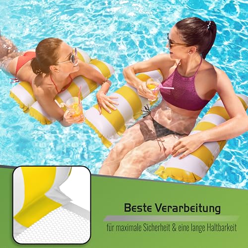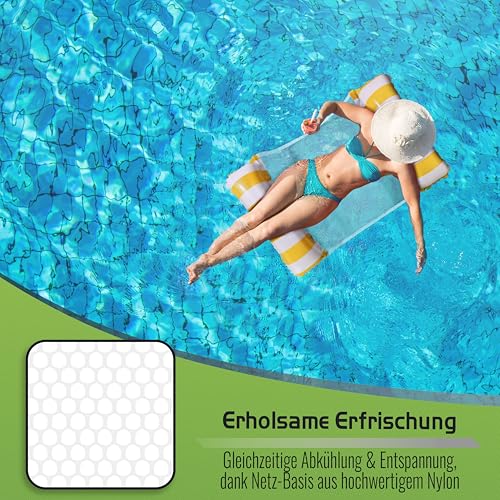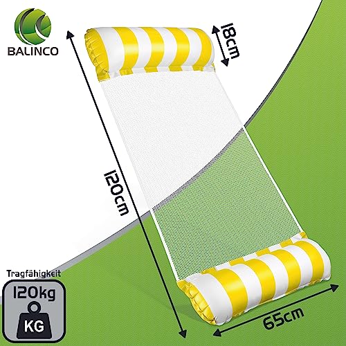 Balinco - مرتبة مائية على شكل أرجوحة، حصيرة مائية، سرير سباحة، مرتبة هوائية مع مساند للأذرع، كرسي استرخاء عائم، كرسي استرخاء، لعبة مائية للأطفال والبالغين من بالينكو (أصفر/أبيض)