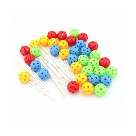 - تتكون اللعبة من مجموعة من الكرات بألوان مختلفة ومجموعة من العصي