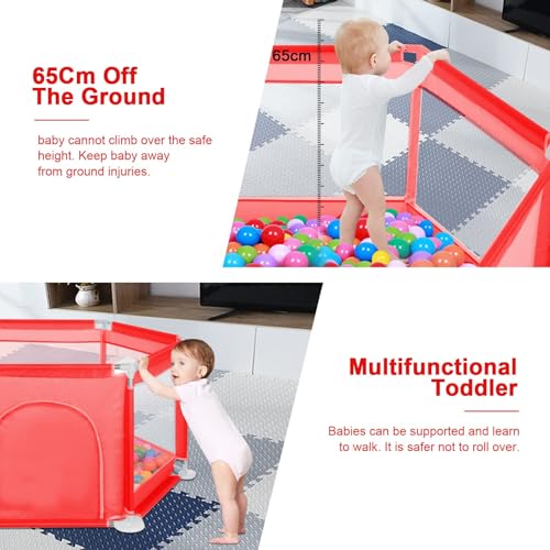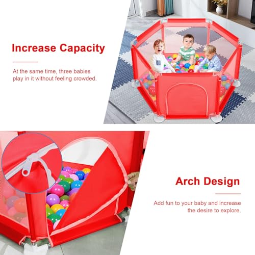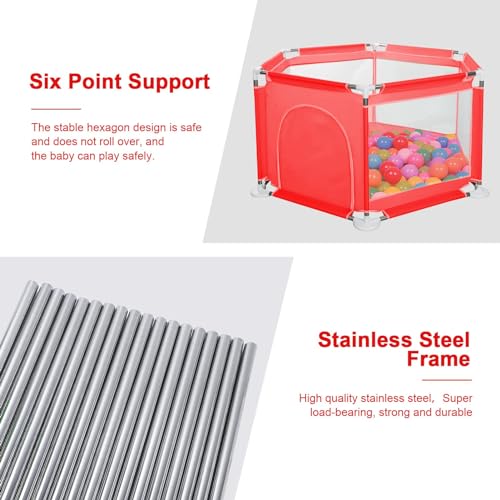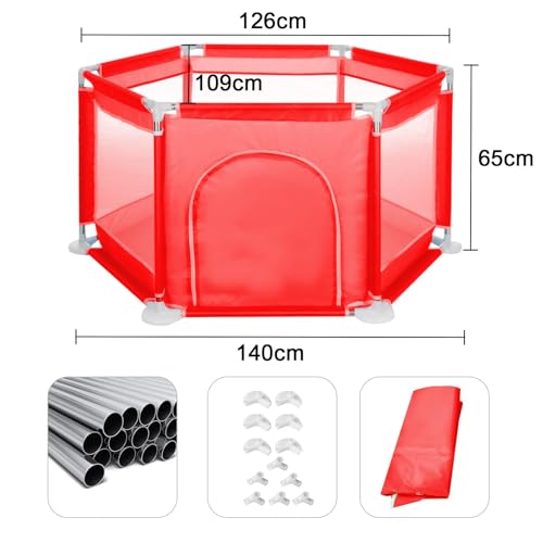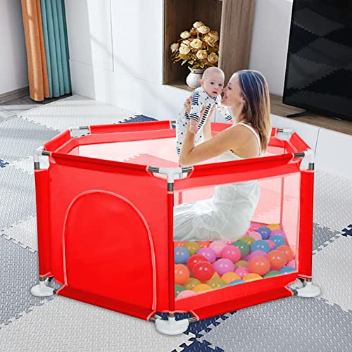 BALLSHOP - قفص لعب للأطفال من لول شوب، ساحة لعب قابلة للطي، ساحة لعب كبيرة مع شبكة جيدة التهوية مناسب للأطفال الصغار مع باب بسوسته دائرية، ساحة لعب بـ6 جوانب قابلة للغسل (أحمر)