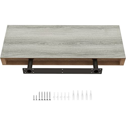 Ballucci - بالوتشي رف عائم حائط خشبي 36 انش مع دعامات غير مرئية للحمام غرفة المعيشة النوم المطبخ الحضانة عمق 6 رمادي ريفي