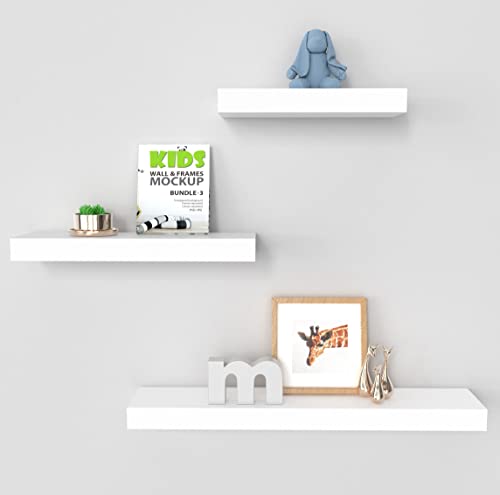 Ballucci - رفوف عائمة حديثة تثبت على الحائط من بالوتشي فوف حائط لديكور غرفة النوم والحمام والمطبخ وغرفة المعيشة مصنوعة الخشب مجموعة 3 مقاسات 12 و16 و24 بوصة ابيض مطلي