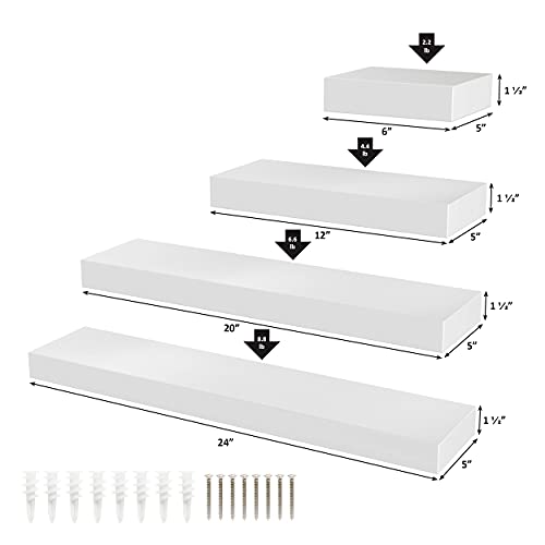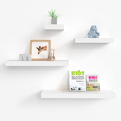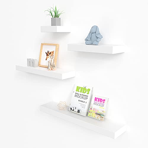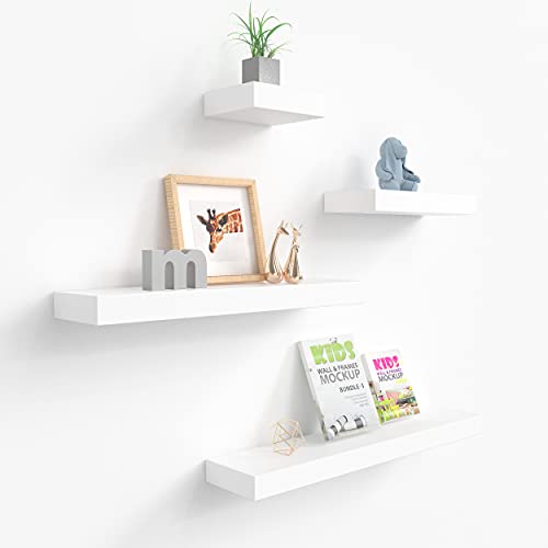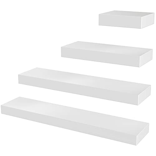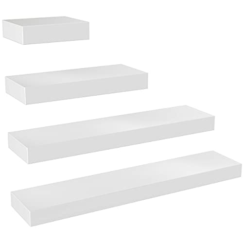 Ballucci - بالوتشي مجموعة من 4 ارفف حائط عائمة حديثة، حواف خشبية مثبتة على الحائط لغرفة المعيشة وغرفة النوم والحمام والمطبخ والمكتب؛ عمق 5 انش - ابيض، خشب مُصنع