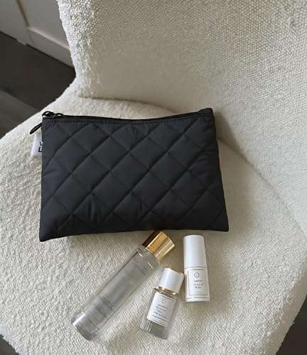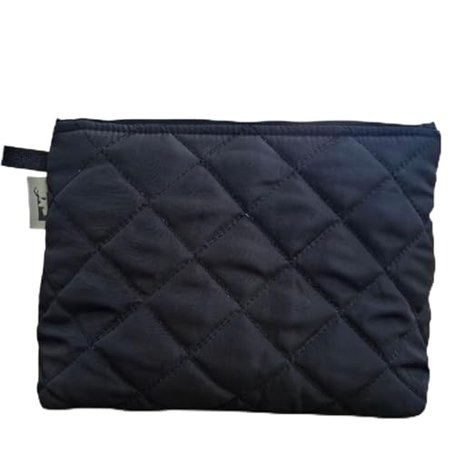 - 💗💗 تصميم أنيق: حقيبة مستحضرات تجميل بنمط مبطن ماسي مميز باللون الكحلي مع لمسات سوداء أنيقة