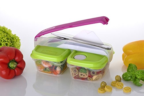 bama - علبتي حفظ طعام بريك مع حامل لادوات المائدة من باما، متعدد الالوان، مقاس واحد