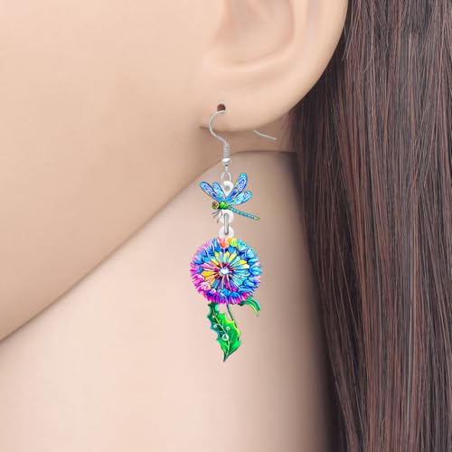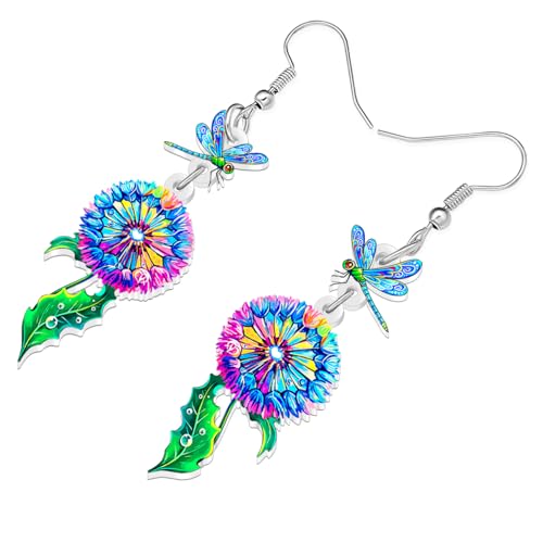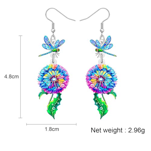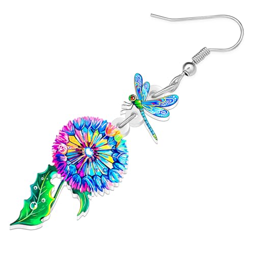 BAMAY - اقراط غير تقليدية من الاكريليك بتصميم يعسوب مع الهندباء من باماي، مجوهرات متدلية بطبقات نباتية، مجوهرات هدايا الربيع والصيف للنساء والام