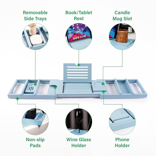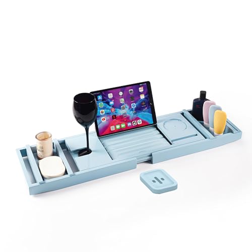 BamBamBoo - صينية حوض استحمام من البامبو قابلة للتوسيع بجوانب ممتدة ومزودة بحامل للموبايل وكوب عصير، حامل موبايل وللكتب للحمام والمنتجعات الصحية الفاخرة مع صبانة مجانية من بامبامبو