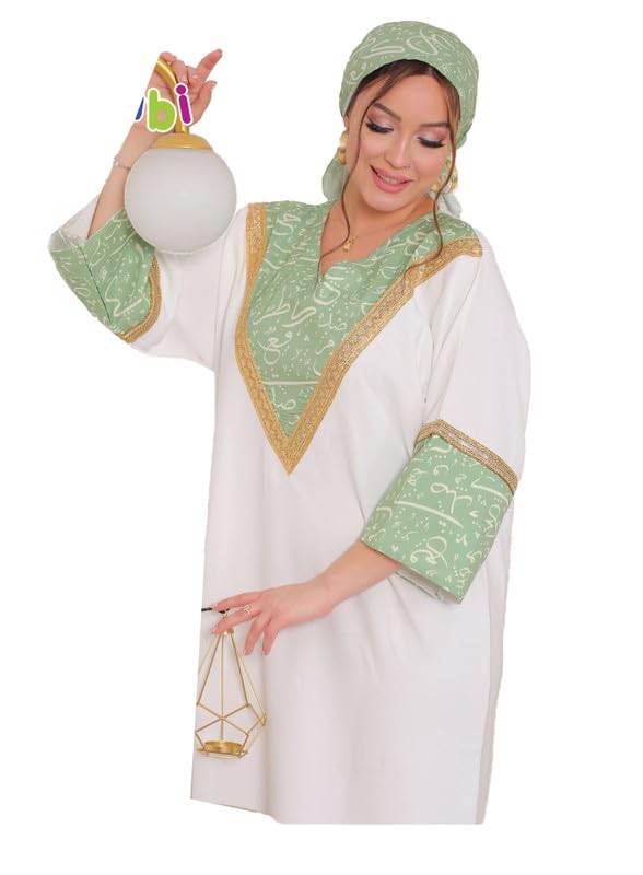 Bambi - بامبي عباية مع تطريز ذهبي وتصميم الخط البرتقالي وشاح مطابق يتضمن مقاس واحد للنساء