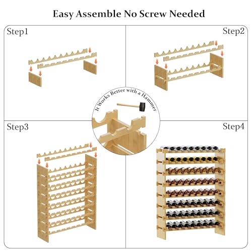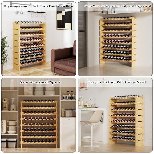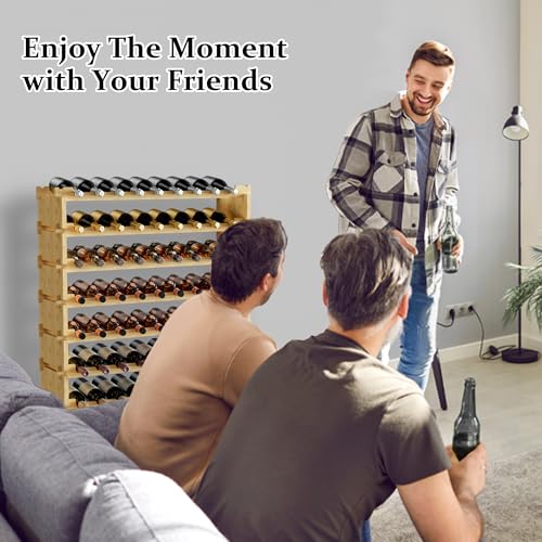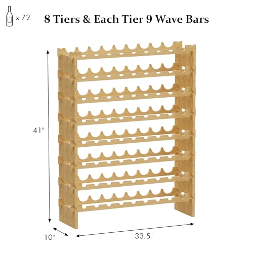 Bambloom - بامبلوم رف نبيذ قائم بذاته، تخزين زجاجات النبيذ قابل للتكديس، منظم حامل نبيذ خشبي قائم بذاته للمطبخ والقبو. 72 زجاجة مشروبات رفوف عرض للشمبانيا (خيزران)