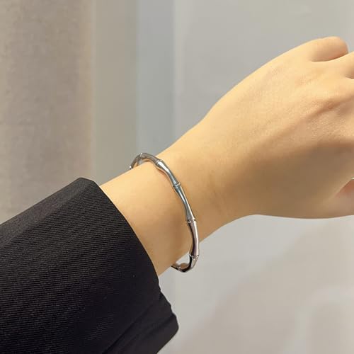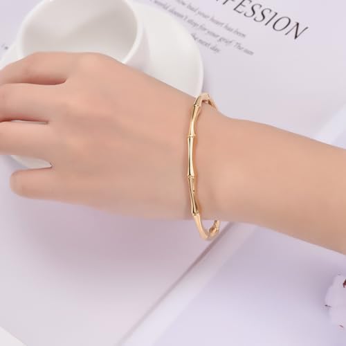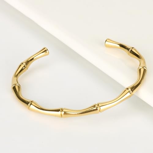 Choistily - أساور حلقية بتصميم مستوحى من الخيزران ولون ذهبي / فضي مفتوحة أنيقة وبسيطة ورفيعة سوار بوهو عريض كلاسيكي قابل للتعديل للنساء