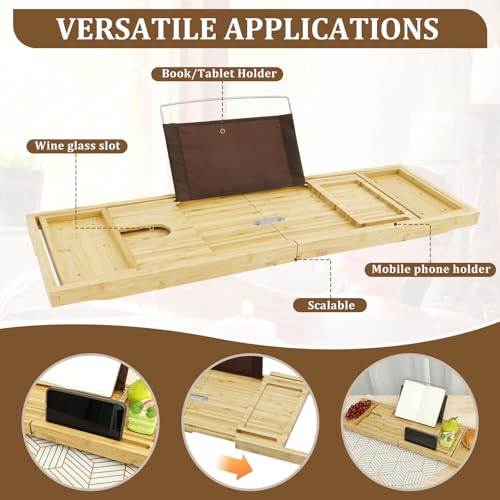 - متعددة الوظائف: يمكن استخدام صينية حوض الاستحمام المصنوعة من خشب الخيزران لوضع التابلت أو الكتب أو النبيذ أو الفواكه أو الوجبات الخفيفة أو المناشف أو غيرها من الأشياء. حوّل حوض الاستحمام الخاص بك إلى منتجع صحي شخصي واستمتع بكل حمام
