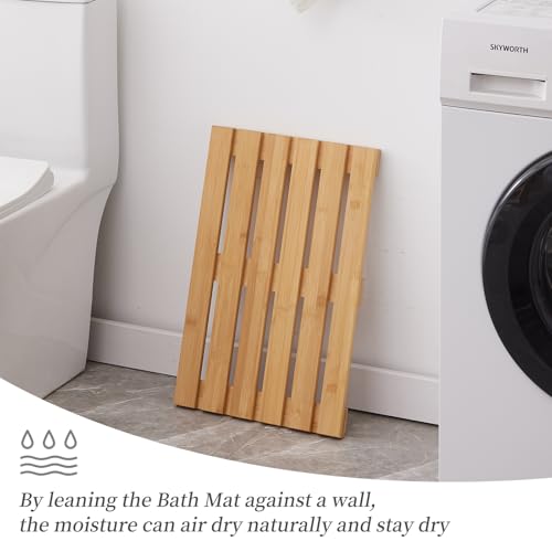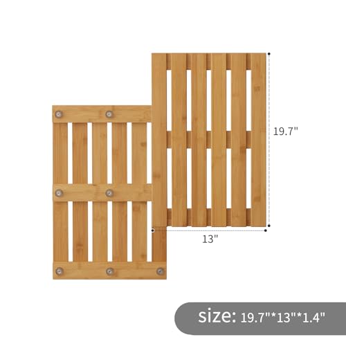 Kitsanery - سجادة حمام من الخيزران مع مطاط مانع للانزلاق، سجادة حوض الاستحمام، سجادة ارضية للدش للاستخدام الداخلي والخارجي والمنتجعات الصحية والساونا وحمام السباحة (طبيعي، 20 × 13 × 1.4 انش)