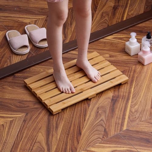 - 【مصنوعة من الخيزران】سجادة الحمام هذه مصنوعة من الخيزران ومتوفرة بثلاثة مقاسات لتختار من بينها. يتميز الخيزران بملمس صلب وقدرة تحمل قوية ومتانة مضمونة أيضًا من خلال حماية عملية الطلاء ثلاثية الطبقات
