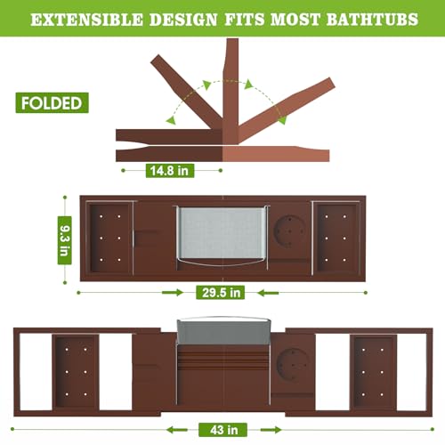 - الاسترخاء في وقت الاستحمام: ابتكر منتجعًا فاخرًا في المنزل مع صينية الحمام القابلة للتعديل المصممة بشكل جميل لحوض الاستحمام. قم بإذابة اهتمامك بتدليل نفسك في حمام مريح مع صينية حوض الاستحمام هذه وأي ملحق حوض استحمام تريده!