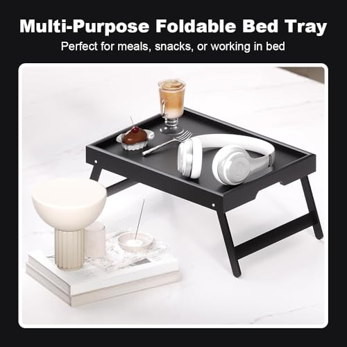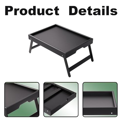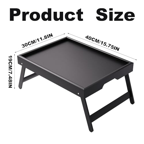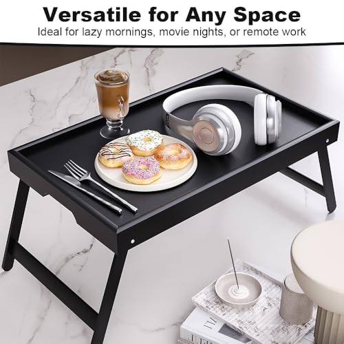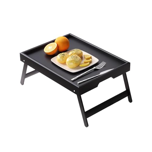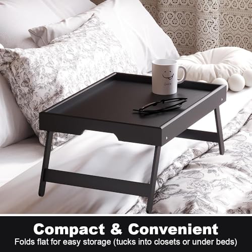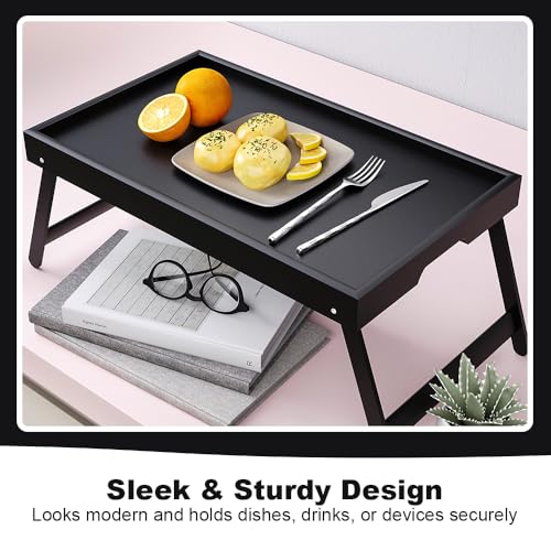 VOLIVX - صينية طاولة سرير من الخيزران مع ارجل قابلة للطي، صينية سرير كبيرة للافطار، مكتب لابتوب محمول، صينية افطار متعددة الوظائف للاريكة والارضية والتخييم (اسود)