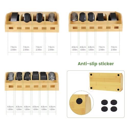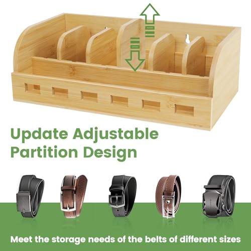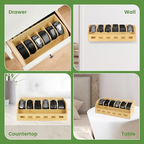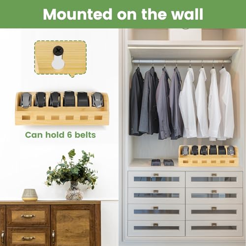 SIKWO - صندوق منظم للحزام من الخيزران، رف احزمة بـ 6 شبكات، منظم احزمة لرفوف الخزانة والدرج، منظم تخزين ربطة العنق والحزام، حامل يثبت على الحائط وعرض للرجال والنساء، هدية عيد الاب (خيزران طبيعي)