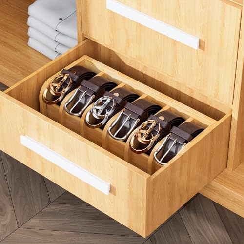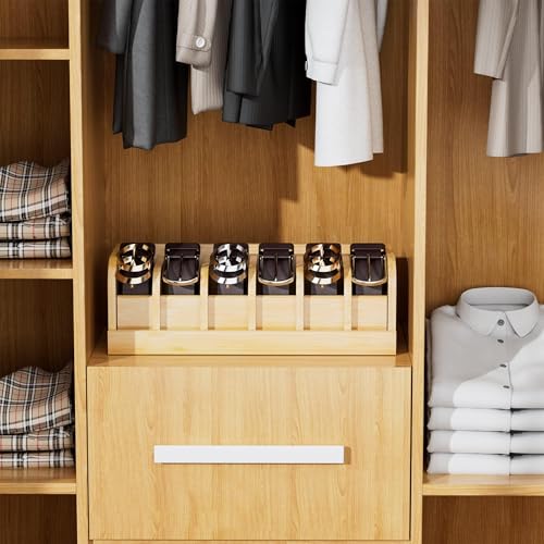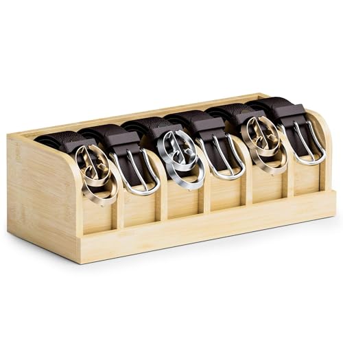 TERRIFI - منظم حزام من الخيزران مع 6 فتحات للخزانة والادراج، رف تخزين حزام صديق للبيئة وعرض للرجال والنساء، صندوق منظم حزام عصري للمنزل والمكتب (خيزران طبيعي)