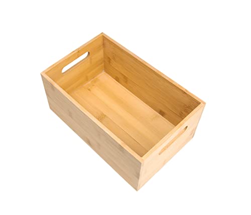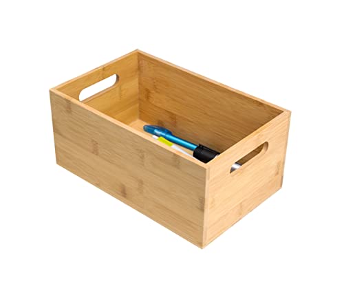 Alsino - صندوق منظم خشبي من البامبو مع مقبض، صندوق تخزين وعلبة هدايا مزخرف بتصميم حرف E، 27×17×12 سم