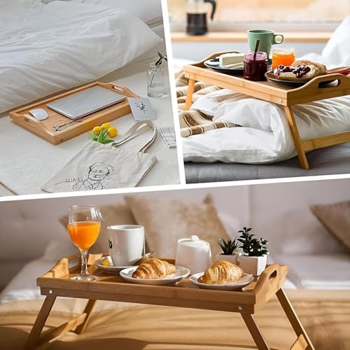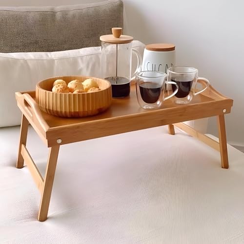Generic - صينية فطور من الخيزران - طاولة سرير من الخشب الطبيعي قابلة للطي، 50 × 35 سم، مثالية لتناول الطعام أو العمل أو الدراسة في السرير مع ارجل ثابتة ولمسة نهائية ناعمة
