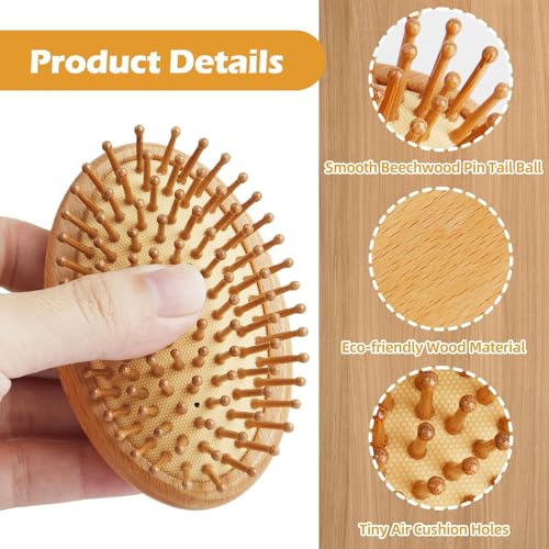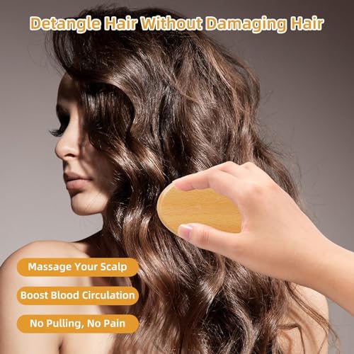 Jaydear - فرشاة من الخيزران لنمو الشعر، فرشاة تدليك شعر من الخيزران بشعيرات صغيرة من الخشب الطبيعي، فرشاة فك تشابك الشعر للنساء، تصميم بدون مقبض، فرشاة خشبية مستديرة
