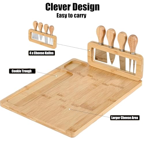 SLONUVLND - مجموعة الواح جبن كبيرة من الخيزران مع 4 سكاكين مثالية لحفلات الزفاف والانتقال لمنزل جديد وعيد الشكر والمناسبات الخاصة، صينية جبن مثالية للترفيه عن الأصدقاء والعائلة